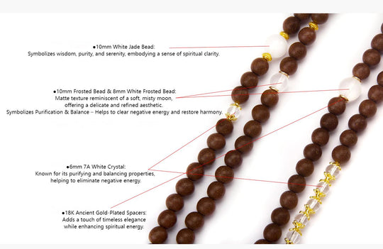 ● 10mm Frosted Bead & 8mm White Frosted Bead – Matte texture reminiscent of a soft, misty moon, offering a delicate and refined aesthetic. Symbolizes Purification & Balance – Helps to clear negative energy and restore harmony.