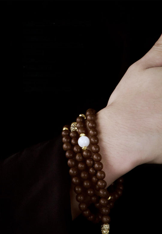 "Ethereal Snowy Lotus" Incense Beads Bracelet· 108 Seeds